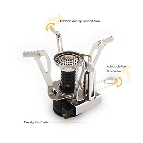 CONVENIENT AND SAFE: High-energy ceramic piezoelectric ignition system makes the stove very convenient for outside camping or hiking, picnic, BBQ (Barbecue). Cookware compact and collapsible designs of combined with the carrying case or bag for enhanced portability. Excellent equipments for camping, hiking, overnight trips or any other outdoor activities.