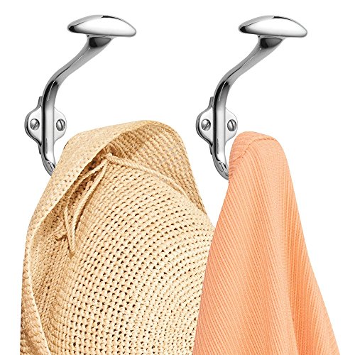 InterDesign Paris Wall Mount Hook – Hanging Storage for Jackets, Coats, Hats and Scarves – Dual Hook, Chrome