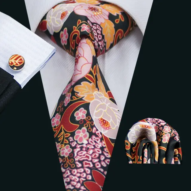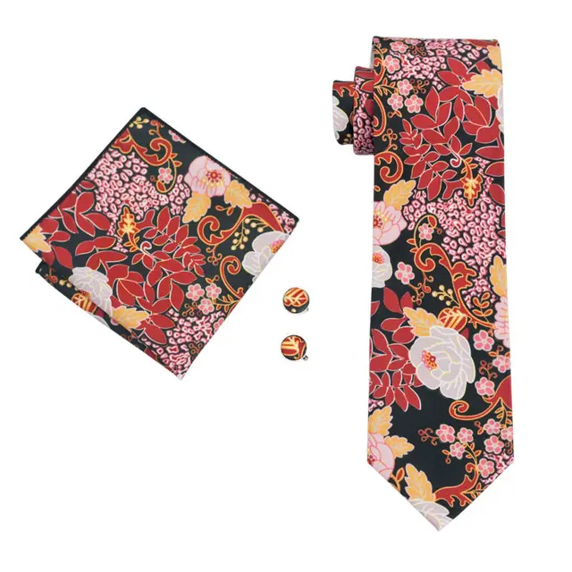 LS-1293 새로운 도착 남성 인쇄 실크 넥타이 고품질 브랜드 디자인 빨간색 넥타이 목에 두르는 손수건 커프스 세트 파티 웨딩