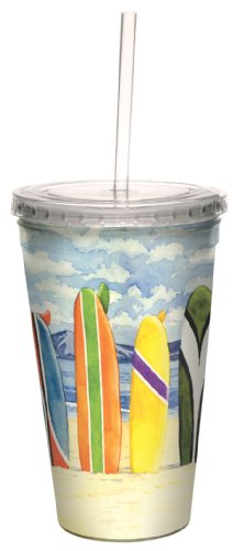 Tree-Free Greetings cc33397 Colorful Surfboards by Paul Brent Artful Traveler Double-Walled Cool Cup with Reusable Straw, 16-Ounce, Multicolored