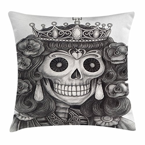 (Ambesonne)/Bedding Bath/Bedding/DIRECT FROM USA/Queen Throw Pillow Cushion Cover by Ambesonne, Day of the Dead Artwork Hand Drawing Folk Skull ...