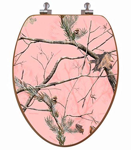 -. Title : TOPSEAT 3D Upland Series Elongated Toilet Seat w/ Chromed Metal Hinges, Wood, Realtree Pink Camo