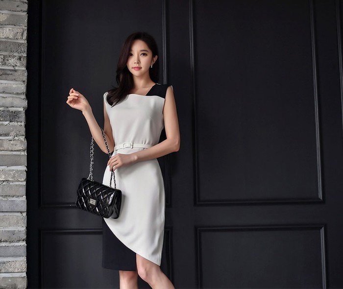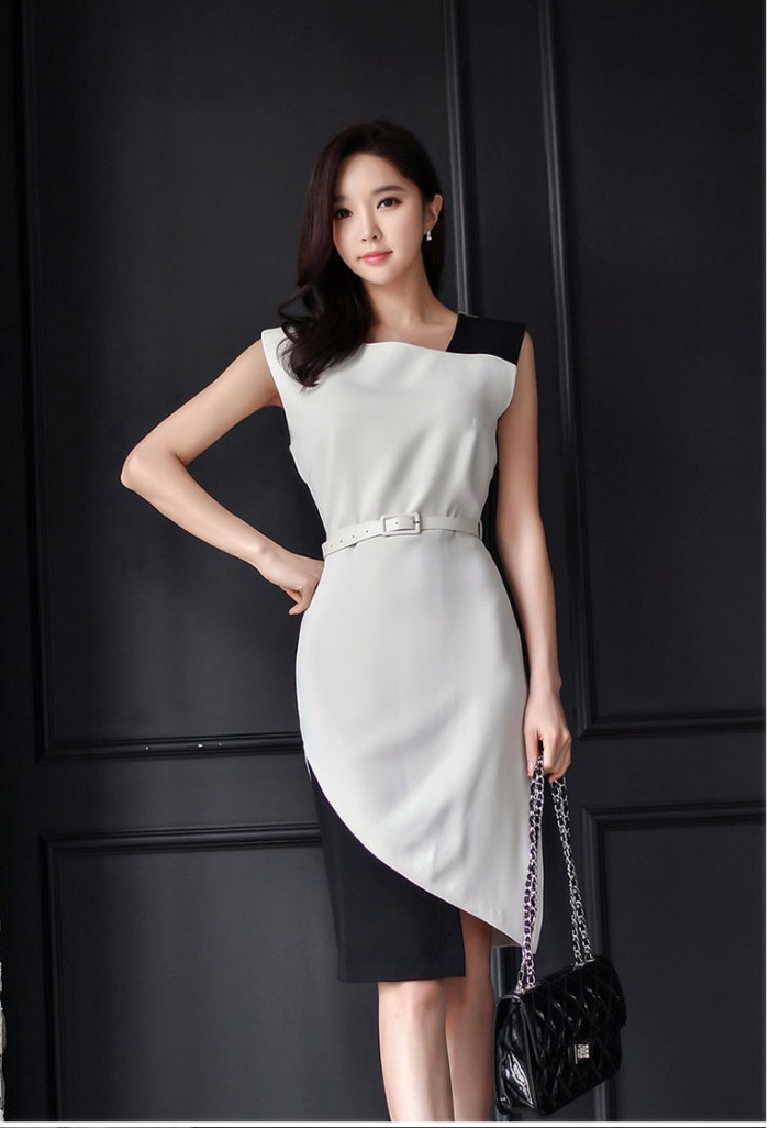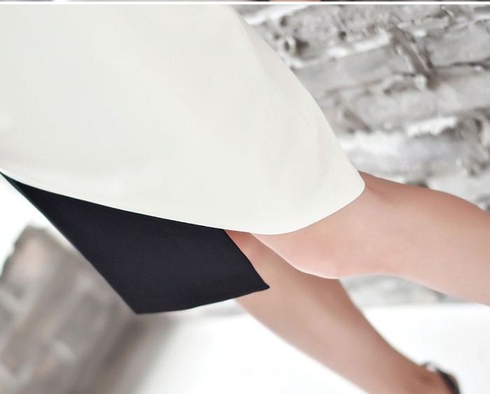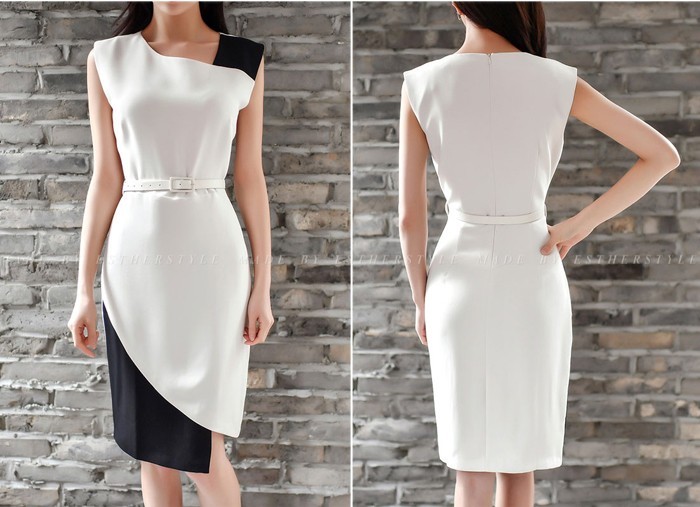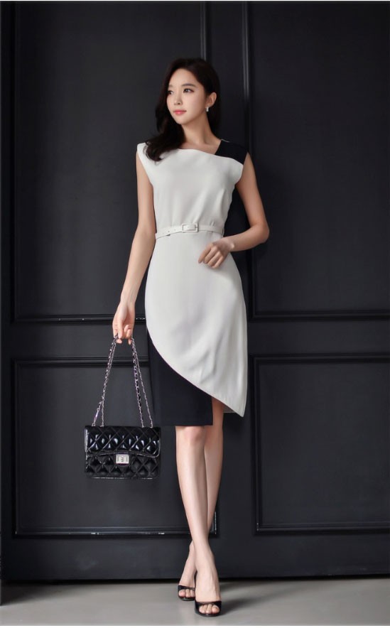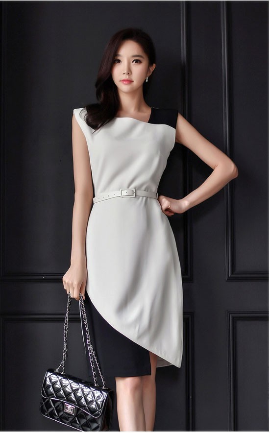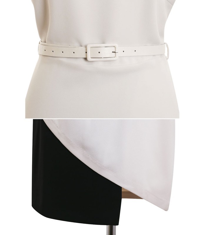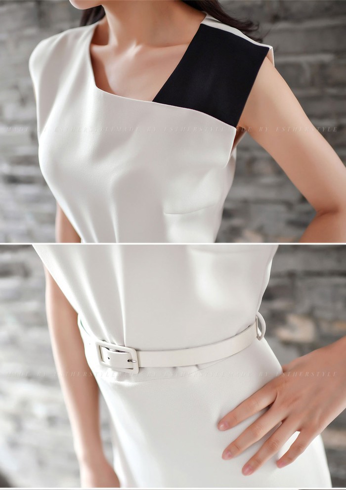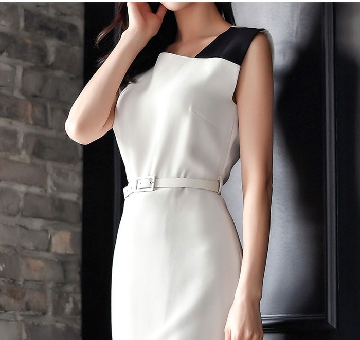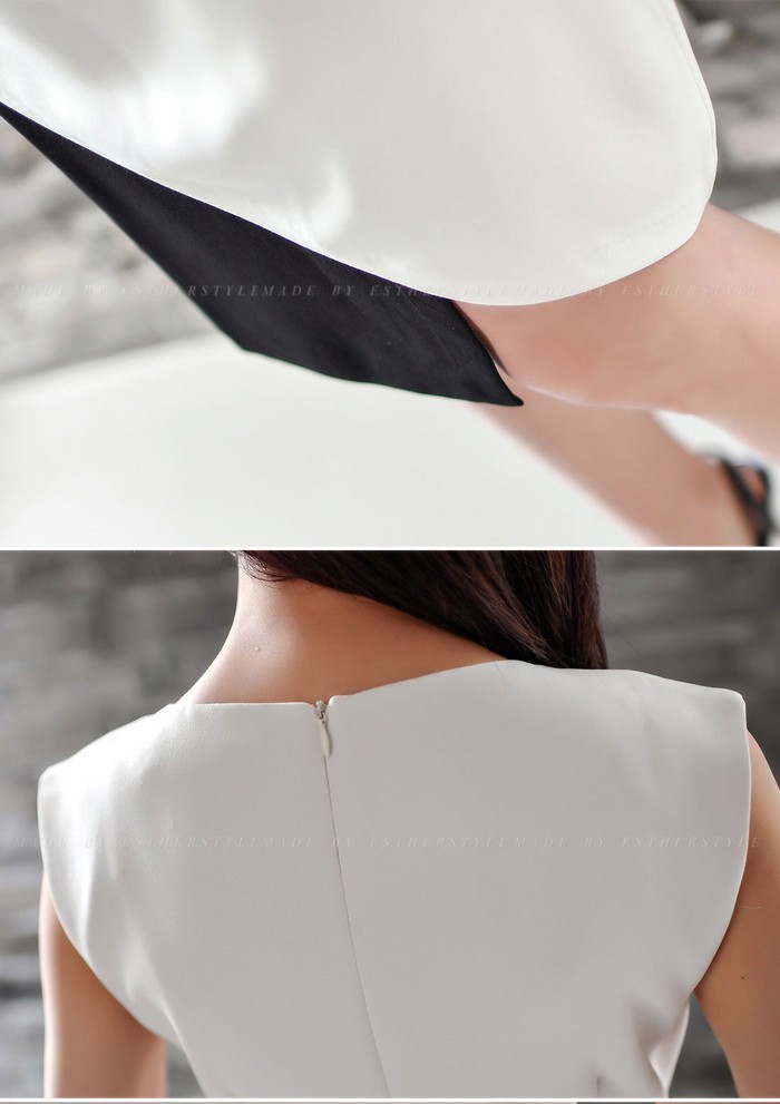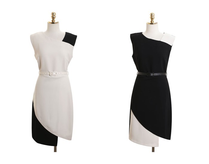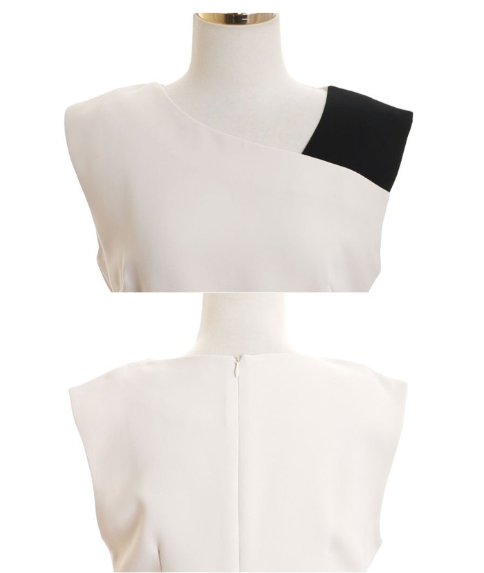 商品名:ワンピース ノースリーブ 膝丈 バイカラー