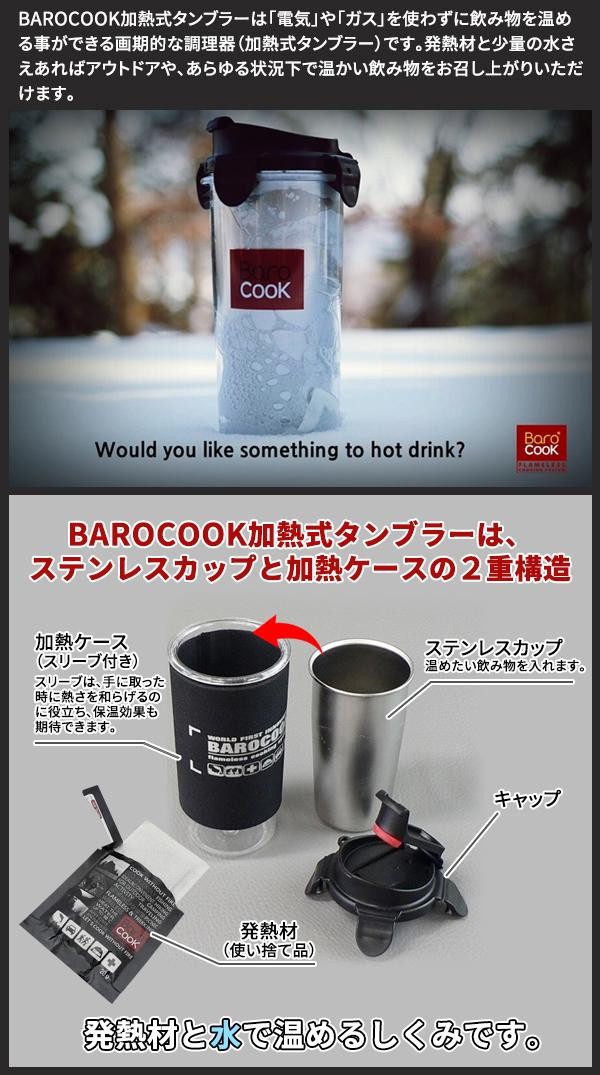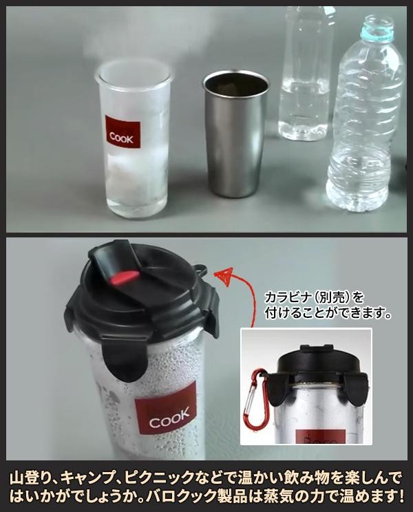 ステンレスカップと加熱ケースとの2重底構造になっており、加熱ケースに発熱材と少量の水を入れる事で反応して蒸気を発生させ、いつでもどこでも温かい飲み物が楽しめます。電気が使用できない場合でも使用可能なので、防災・緊急時・アウトドアなどにおすすめです。 |