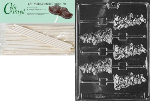 Cybrtrayd 45St50-H053 Witch Broom Lolly Halloween Chocolate Candy Mold with 50 4.5-Inch Lollipop Sticks