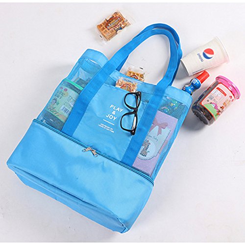 Product Description You needn't have to take a couple of totes and a small cooler bag anymore when going to the beach!!! Phroboxl 2 in 1 Mesh Beach Tote Bag with Cooler is large enough for toys, towels, goggles and a few canned drinks. Features: √ Mesh fabric is great for drying wet stuff but also for easy visibility - no more "Where's that newspaper, keys, money, book, etc." √ It is easy to carry as the straps are long enough √ The cooler in the bottom will fit a few sodas, or it could make a nice compartment to store sunscreen out of the heat √ Lightweight, it is compact to carry for holiday. "Order Now" with LIFETIME Quality Guarantee, Priced for a Limited Time Only! 0