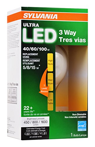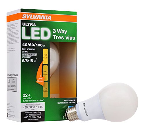 Sylvania 74021 2700K 40/60/100 Watt Equivalent Medium Base A21 Ultra 3-Way LED Light Bulb, Soft White