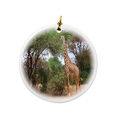 Rikki Knight Giant Giraffe Design Round Porcelain Two-Sided Christmas Ornaments