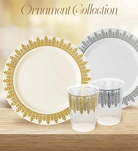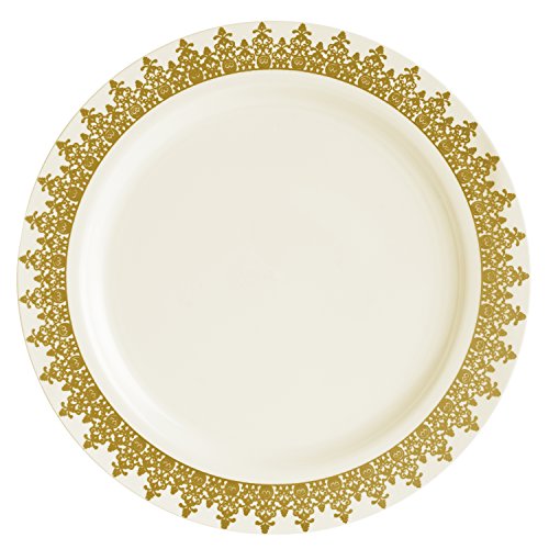 Decor Elegant Disposable Premium Heavy Weight 10.25" Dinner Plates, Ornament Cream and Gold, 40 Count