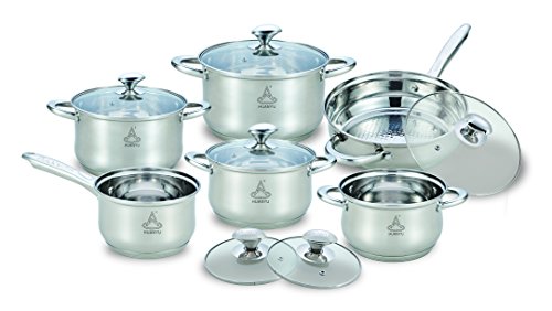 Studio : LONGWAY INC Publisher : LONGWAY INC Binding : Kitchen Product Description This larger size of 12 pieces set includes: 9.5-inch (3.1-quart) frypan with lid 2-quart sauce pan with lid 2-quart, 2.6-quart, 3.7-quart, 6.4-quart casseroles with lids, mirror polished stainless steel inside and outside, good quality thickness, with net weight of 17 lbs. and gross weight of 18.3 lbs., dishwasher-safe, the stainless steel body is oven safe to 500 degrees, suitable for cooking source electric, induction, gas and ceramic. 0