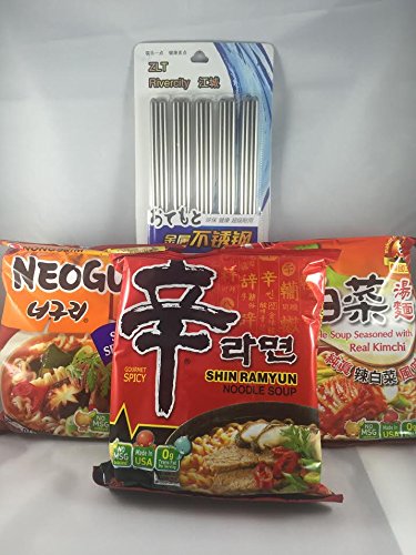 Nongshim Noodle Soup Variety Pack ( Pacck of 12 ) With 5 Pairs Stainless Steel Chopsticks Free