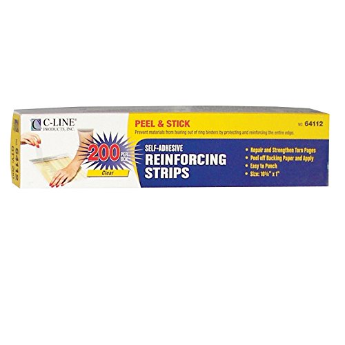C-Line Self-Adhesive Reinforcing Strips, 10.75 x 1 Inches, Clear, 200 per Box (64112)