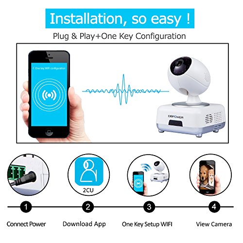 -. Feature : 1280×720p resolution, H.264 compression produces HD quality images and smoother video; / 355°pan and 120°tilt function acts as your eyes and ears, nothing can slip past you undetected; / Advanced alarms push technology support you dial 5 family members' phones at the same time; / 3D Voice engine technology, support echo cancellation and noise suppression technology; / Free "DBPOWER" App, easy and quick installation which bring you a perfect buyer experience.