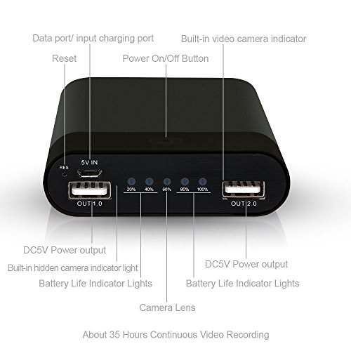 ✔ SPY CAMERA PHONE CHARGER LONG TIME BATTERY WORKING: Built-in 12,000mAh Super Capacity Battery, Promise continuously recording time up to 35 hours.and charger for Iphone 3-4 times.