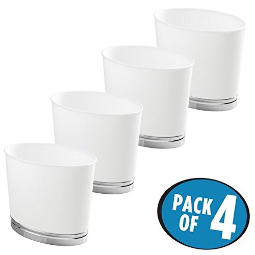 mDesign Oval Slim Decorative Plastic Small Trash Can Wastebasket, Garbage Container Bin for Bathrooms, Kitchens, Home Offices, Dorm Rooms - Pack of 4, White/Chrome Finish Base
