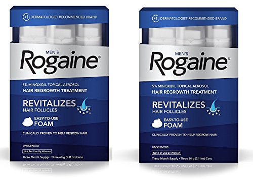 For men suffering from hereditary hair loss, Men's Rogaine Foam can help regrow hair. With 5% minoxidil, this is the first FDA-approved hair-regrowth treatment foam. It has been clinically proven to help hair regrowth in men who used it every day for four months*. Easy to use and unscented, Men’s Rogaine foam absorbs quickly into the scalp, dries quickly, and has a texture that lets you feel exactly where you are applying it. This package of Men's Rogaine Foam includes three 2.11-ounce aerosols, a three-month supply. *In a four-month clinical study (n=352) of twice daily use of Men's Rogaine Foam vs. placebo.Feature