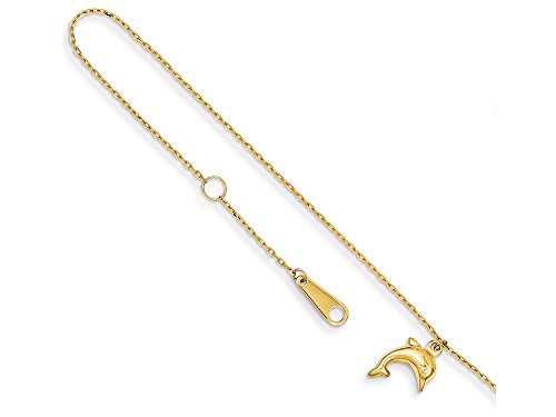 The beautiful 10 Inch 14k Dolphin Charm W/1 Inch Extension Anklet, crafted in 14 kt Yellow Gold . This style measures 1.00 mm wide, 10.00 Inches long.Charm/Element Length: 13 mmCharm/Element Width: 9 mm. GIFT CARD OPTION WILL NOT BE AVAILABLE FOR THIS ITEM! UPC Code: 191320005353.Feature