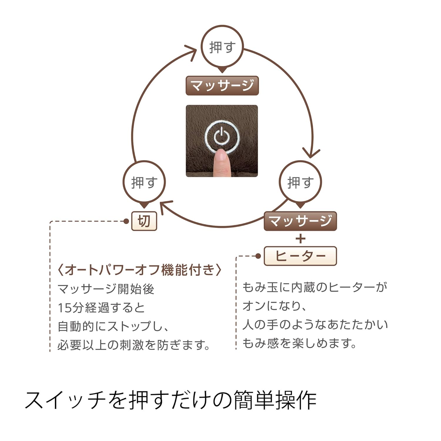 類別名称:バイブレーター中分類名:家庭用マッサージ・治療浴用機器及び装置一般的名称:家庭用電気マッサージ器クラス分類:Ⅱ あんま、マッサージの代用として、一般家庭で使用する。 サイズ;約幅390×奥行265×高さ105mm(本体カバーあり) 本体重量:約1.6kg 素材・材質:本体/ウレタンフォーム、本体裏地/ポリエステル100%、カバー表地/ポリエステル100%、カバーマッサージ部/ポリエステル55%・ナイロン45% 原産国:中国