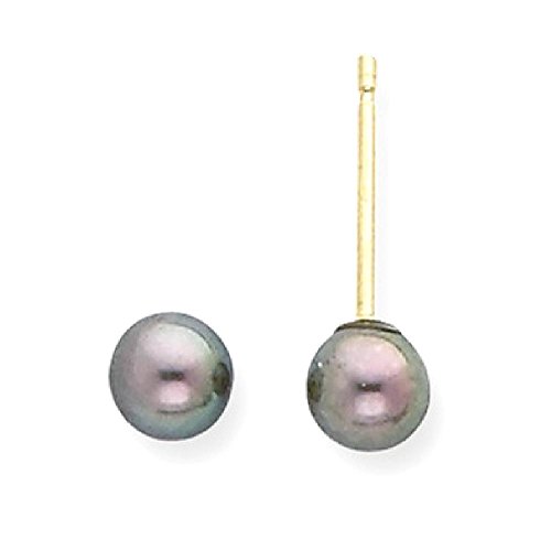 ICECARATS DESIGNER JEWELRY 14K YELLOW GOLD 5MM BLACK ROUND FRESHWATER CULTURED PEARL STUD BALL BUTTON STUD EARRINGS