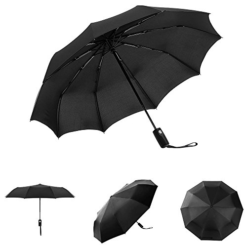 -. Title : Umbrella Windproof,HEIHEI Compact Umbrella for Travel Auto Open/ Close 10 Ribs Waterproof/Windproof Umbrella Unbreakable Large Umbrella 60MPH Golf Canopy – Black
