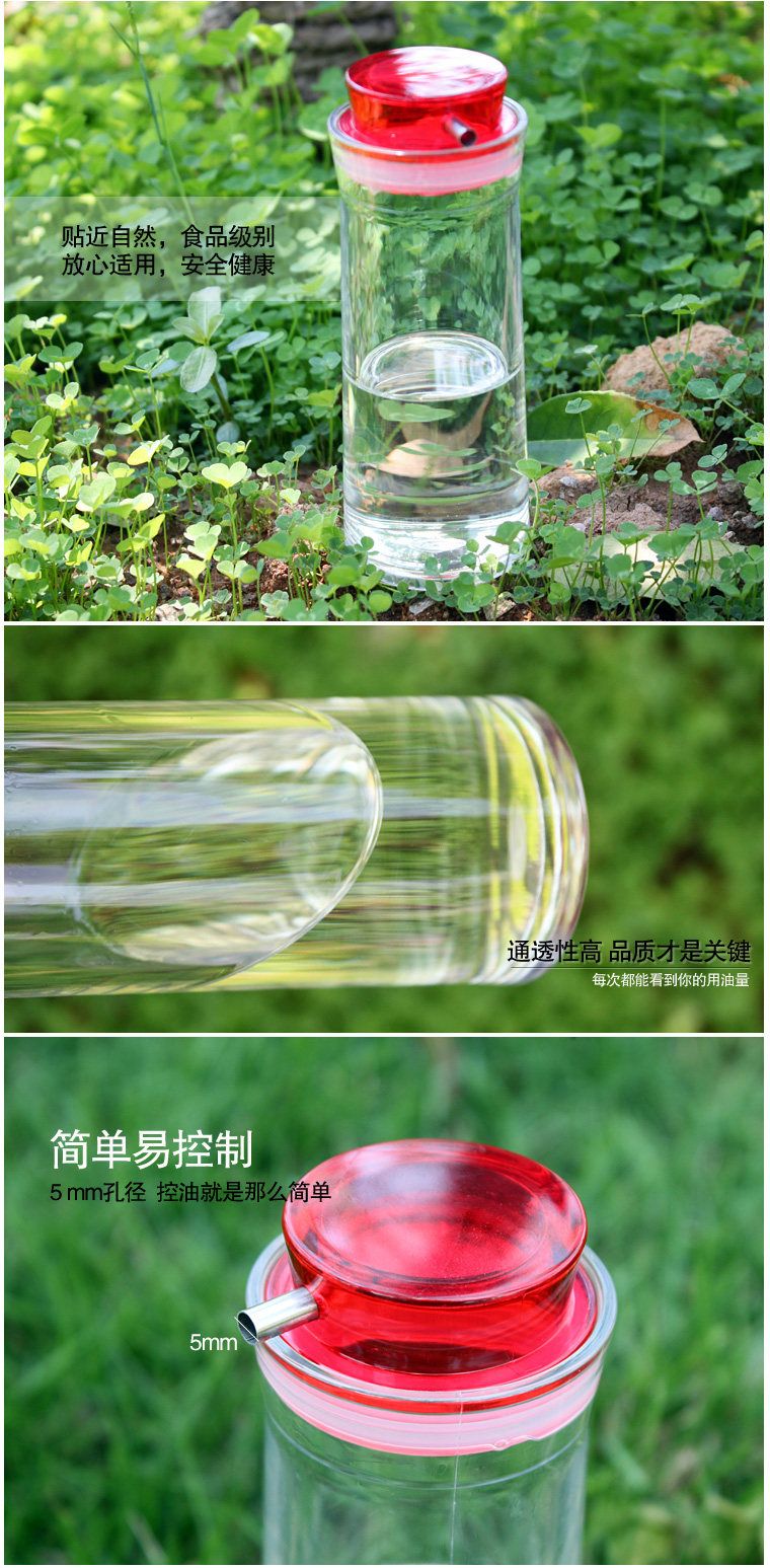 瓶身圆滑透明,造型简约时尚,油、酱油、醋等调料都适用.