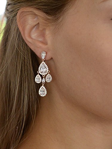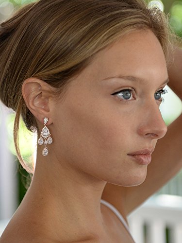 Stunning Clip-On Chandelier Dangle Earrings; Gleaming Pear-Shaped CZ Pave Halo Frames; Non-Pierced Clip Backs with Comfort Cushions