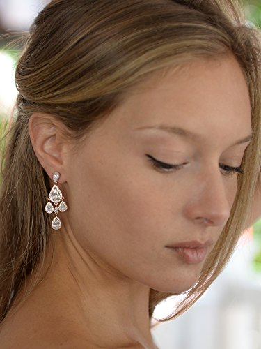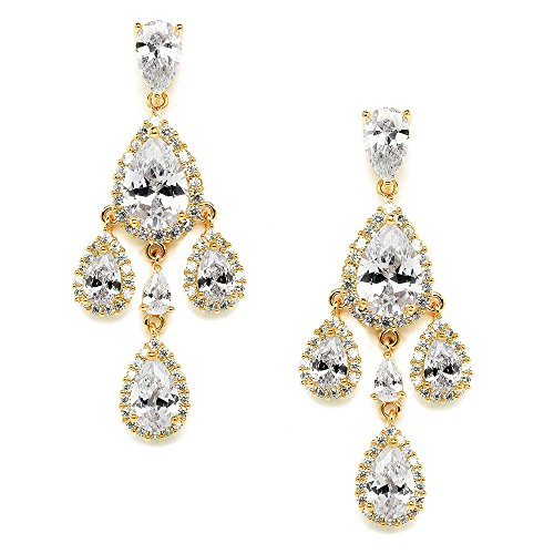 Mariell's dramatic Gold clip on chandelier earrings have it all - dazzling runway glamour, a perfect medium-size silhouette and a lightweight clip design for day-into-night comfort. Make your grand entrance unforgettable with our gleaming pear-shaped clip dangle earrings crafted using only the finest AAAAA quality Cubic Zirconia. These luxurious Yellow Gold baubles have super comfortable clips with cushion backs so you'll feel as great as you look! Mariell's designer bridal clip-on chandeliers are guaranteed to make a glistening Red Carpet statement at your wedding, formal, pageant or any special occasion. We promise you'll love these top selling non-pierced beauties or your money-back. Who needs diamonds when you have these spectacular clip on Zirconium statement earrings! Treat yourself or someone you love to some seriously gorgeous sparkle. Plated in Genuine 14 KT Gold. Lifetime Guaranteed.Feature