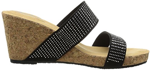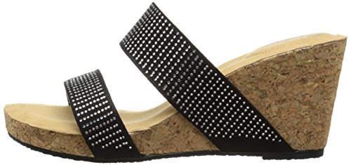 Soft suede-textured microfiber fabric upper. Allover mini crystal detailing. Straps wrap around midsole sides. Soft fabric strap lining. Soft fabric-topped footbed. Memory Foam cushioned comfort footbed with heel cushion pad. Relaxed Fit® design for a roomier comfort fit. Natural cork veneer lightweight shock-absorbing midsole. 3/4' midsole. 3 1/2' total wedge heel height. Flexible rubber crepe textured traction outsole. Imported.