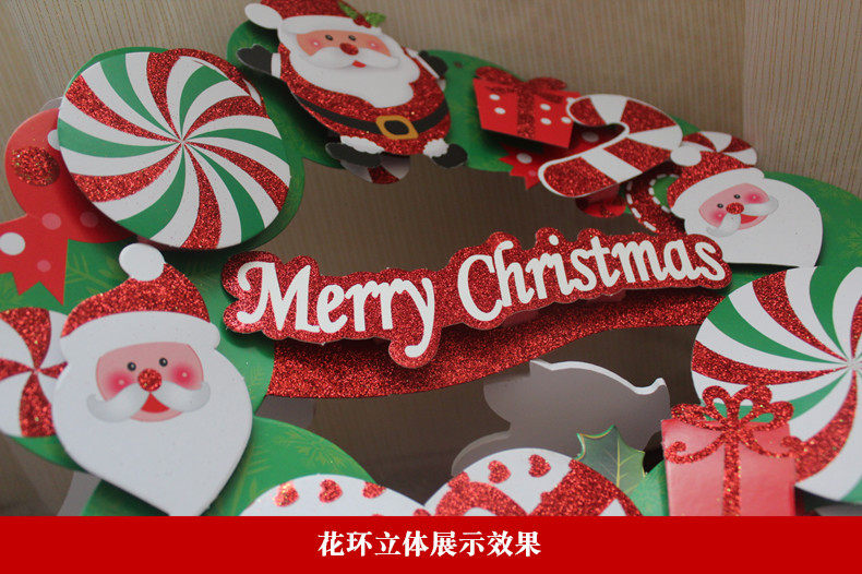 圣诞节装饰品 圣诞纸质花环挂饰酒店布置 商场橱窗门挂门饰用品