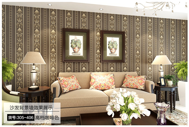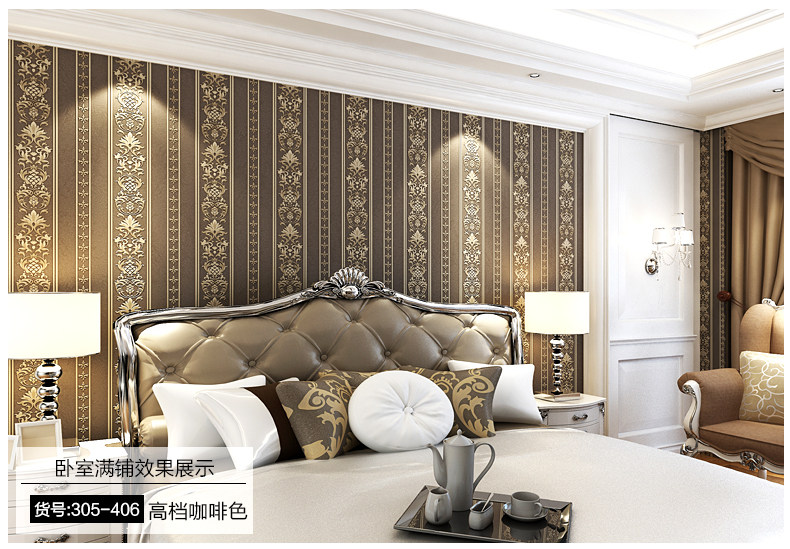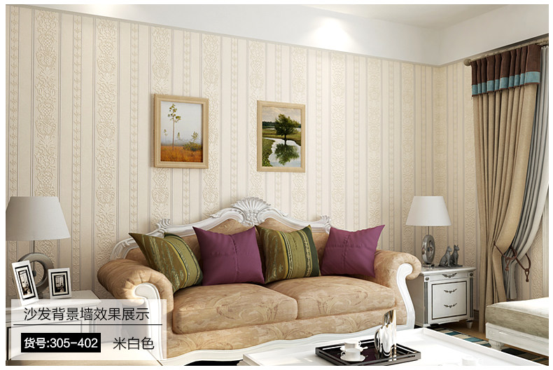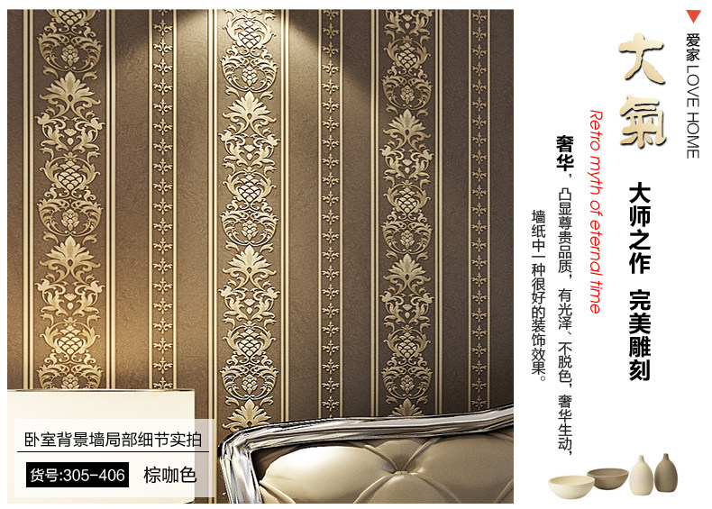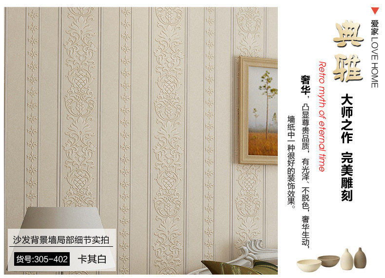 御纸世家 欧式现代简约竖条纹墙纸 3d卧室客厅书房防水深压纹壁纸