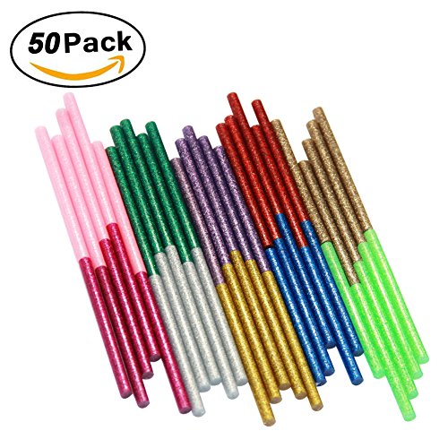 Ewparts 50 pack Glitter Hot Melt Adhesive Gule Stick 7mm x 100mm Multi Color