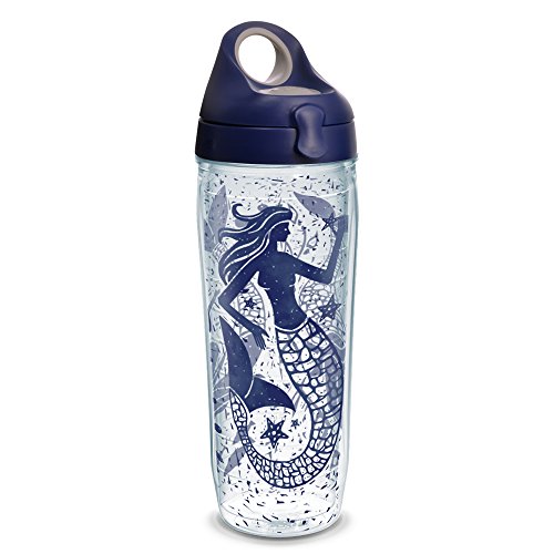 Tervis 1232305 Mermaid Collage Wrap Water Bottle with Navy WB Lid, 24 oz, Clear