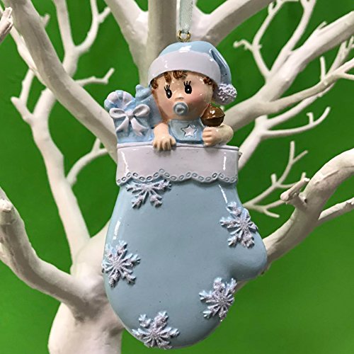 Baby's First Christmas Ornament 2017,Personalize Mittens Christmas Ornament,Made of Resin,(blue)