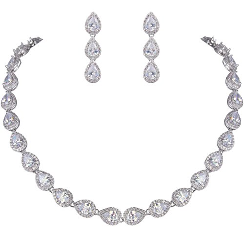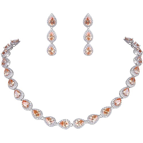 This fabulous jewelry is made of cubic zirconia and the bedazzling stones make you feel more ladylike. Cubic zirconia, as a beautiful synthetic stone that is durable, lustrous and entirely colorless. It is frequently used in jewelry. Sparkle under lights, telling its quality to everybody.