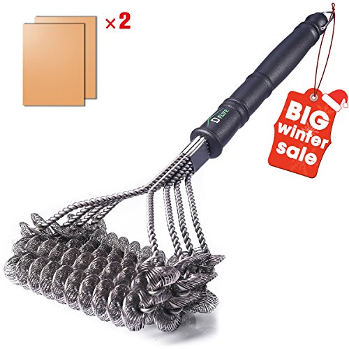 4 BRISTLE FREE SCRUBBING HEADS - Our BBQ grill brush is 100% safe with stainless steel wire for people who do not want bristles. No sharp edges& Safe for Porcelain, Ceramic, Infrared, Gas, Weber, Char-Broil, etc. Free risk to your healthy! Also you'll receive 2 grill mats for FREE.