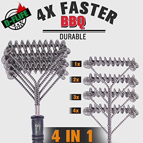 FAST CLEANING WITHOUT BURNING YOUR SKIN - 18 inches long enough to keep your hands away from the heat, yet quadruple cleaning power with our 4 scrubbing heads - Just fire up the grill, lid down screaming hot, clean the grill and get the meat on!