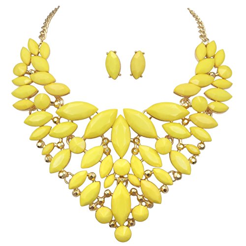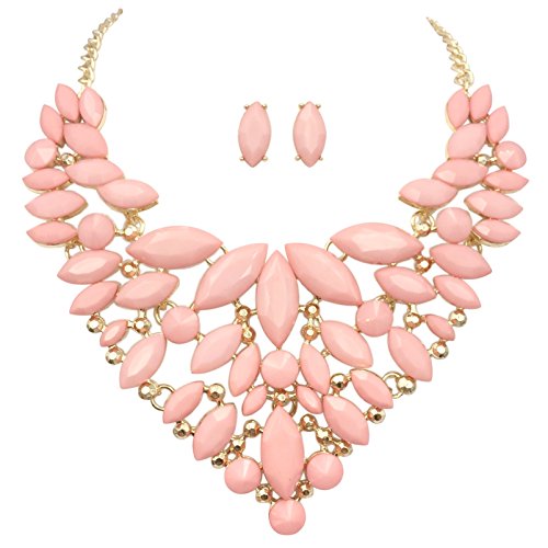 Unique Cluster Bib Statement Boutique Style Gold Tone Necklace & Earrings Set - Assorted colors (Red)
