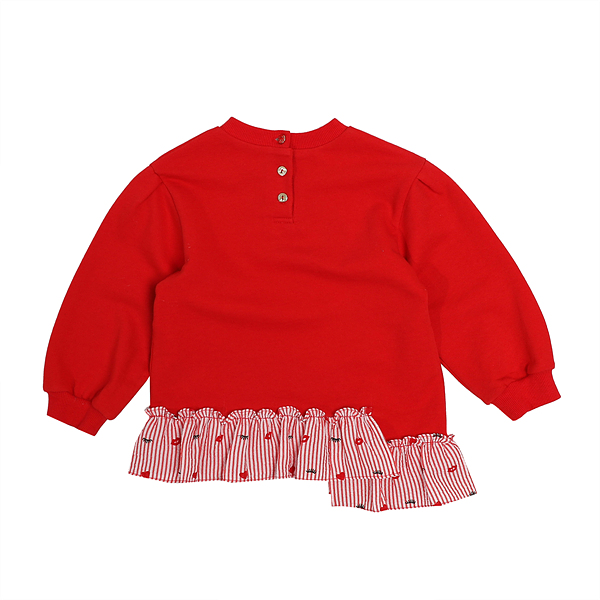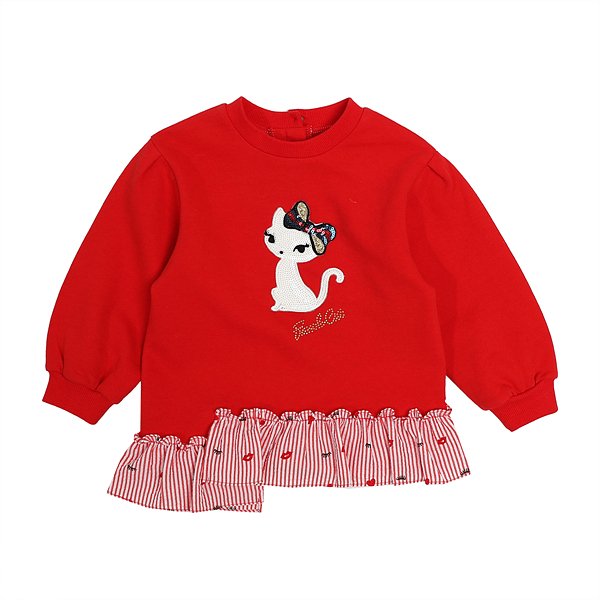 상품설명 레드스트라이프가 포인트인 레드 롱티입니다. 레드 스트라이프 프릴이 언발란스 되도록 디자인되어 러블리하면서도 유니크합니다. 데님팬츠 등, 어떠한 하의와도 코디가 잘되는 아이템입니다. 가슴에 고양이자수가 러블리합니다.