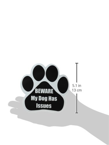 "Beware My Dog Has Issues" Car Magnet With Unique Paw Shaped Design Measures 5.2 by 5.2 Inches Covered In UV Gloss For Weather Protection