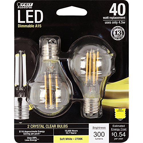 Feit Electric BPA1540N/827/LED/2 40W Equivalent Clear A15 Soft White Dimmable Intermediate Base LED Light Bulb (2 Pack)
