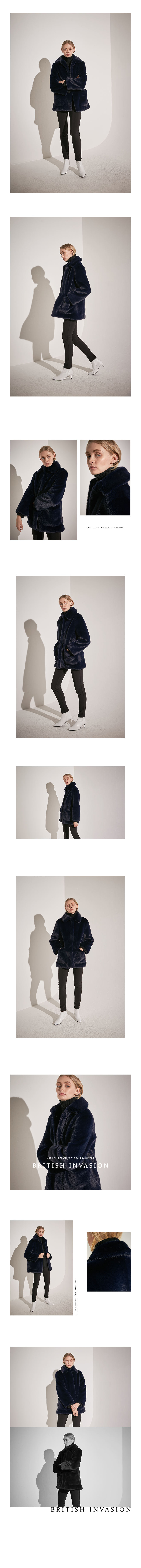 미니멀한 디자인에 짙은 네이비 페이크 퍼의 유니크한 페이크 퍼 하프코트입니다.