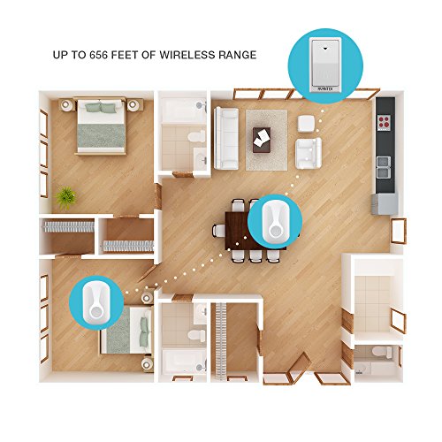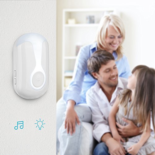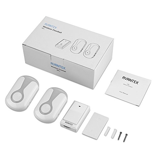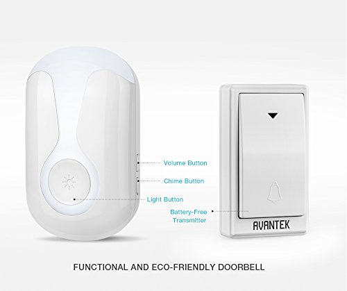 This AVANTEK wireless doorbell includes one self-powered transmitter and two plug-in receivers with LED lights. It can be conveniently used in homes, offices, factories and more.