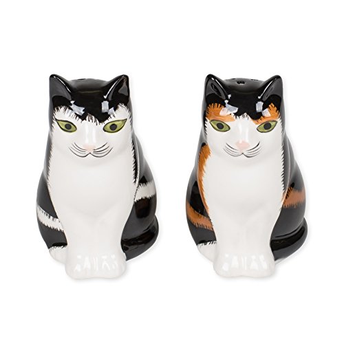 Calico American Shorthair Cats 3 Inch Glazed Ceramic Salt and Pepper Shakers 2 Piece Set