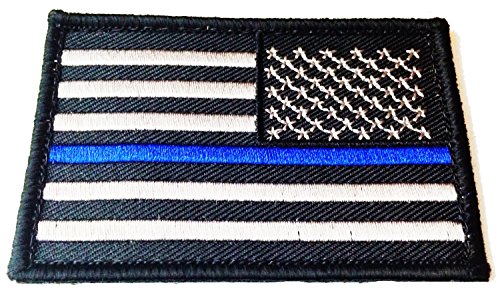 -. Feature : Measures 75mm (3 inch) X 50mm (2 inch) with hook Velcro-backing. / The Thin Blue Line is a symbol in use in the United States and Canada by law enforcement officers and others / Patch is a REVERSED US Flag (made for the right uniform sleeve)