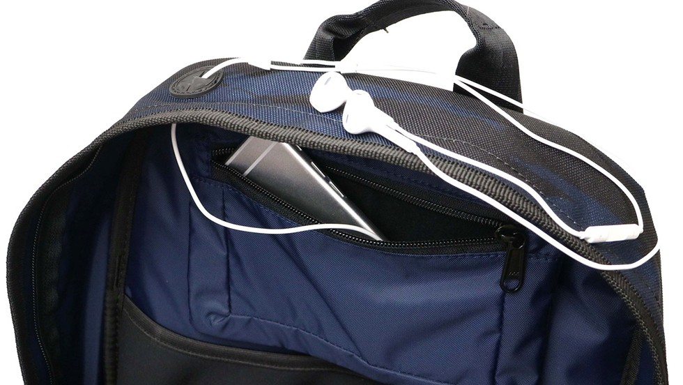 収納部には音楽プレイヤーやスマホなどを収納するポケットが備わり、上部にイヤホンを外側へ貫通させることができる穴が装備されているので、プレイヤーを収納したまま音楽を聴くことが可能です。