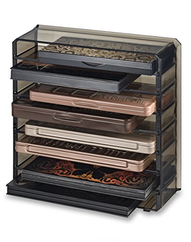 About this produce t: This premium acrylic palette organizer comes with 8 individual spaces for storing standard sized palettes. This organizer is designed with removable dividers and can stand or lay flat. Please note: this product is intended for standard sized palettes, for larger and smaller sized palettes please see our additional palette organizer sizes. Size: 9.75L x 9.5W x 2.7H inches each individual compartment is: 8.6L x 1w x 2.3H inches.Feature