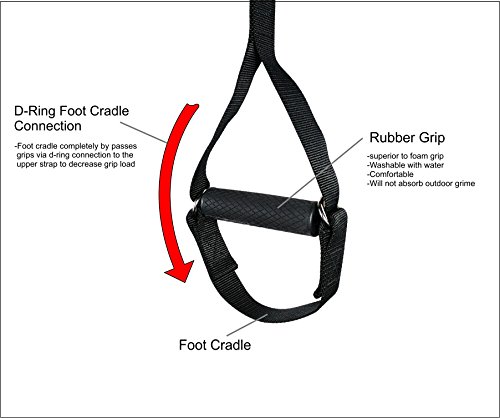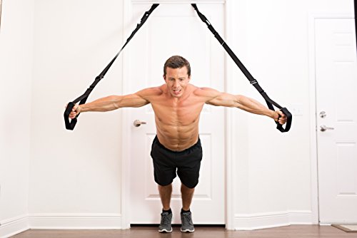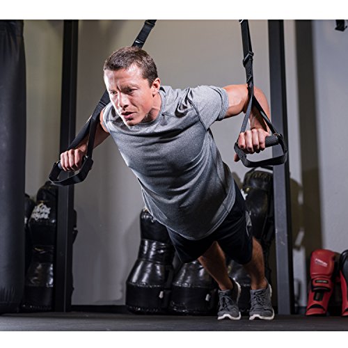 Great Price Get in the best shape of your life at a fraction of the cost compared to competitor's product. Unlike the other products on the marketplace, these straps can be separated as far, and as close as the user desires. Includes laminated workout guide, rubber grips, and a carry bag. Now you can workout indoors and outdoors while on vacation and on business trips. Includes: -2 Body weight resistance trainer straps -2 Rubber hand grips -2 door stop straps -1 Mesh Bag with cord lock -1 Fully laminated 8.5 x 11 in. workout guide and setup manual -60 day warranty Full Body Resistance Trainer Straps can easily withstand use with its high quality nylon material Straps are sewn together with strong double bonded nylon stitching U-shaped Foot cradles below grips allow for more challenging exercises Fully Laminated Portable Workout Guide 23 Exercises that are clearly drawn performing each workout Each exercise recommends strap distances from each other Upper, lower, and core exercises, and yoga stretches. Setup instructions for indoors and outdoors. Comfortable Rubber Hand Grips Rubber grips can be rinsed with water and dried after each intense workout Unlike foam grips, rubber grips are much more sanitary in use with hands and foot cradle exercises We're so sure you'll love this product that we back it with our 60 day money back guarantee: simply return your for a full money-back refund. It's RISK FREE, so order now. 0 |