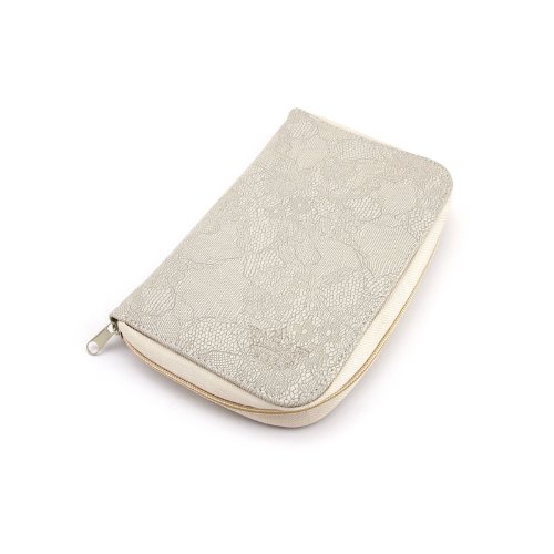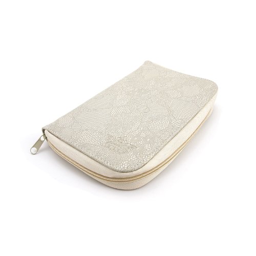 PUEEN 168 Nail Stamping Plates Synthetic Leather Holder Case Organizer in Creamy White Rose Lace Pattern-BH000320