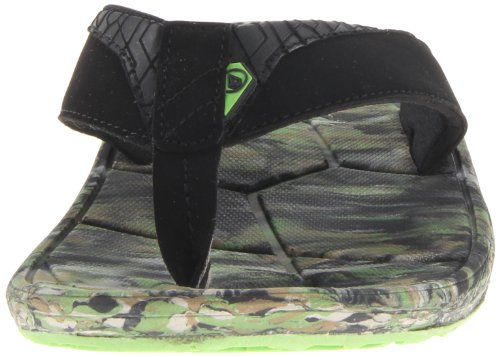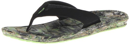 - Feature : Bold flip flop with full bleed swirling pattern midsole and footbed / Dual texture strap with logo patch / Siped EVA footbed