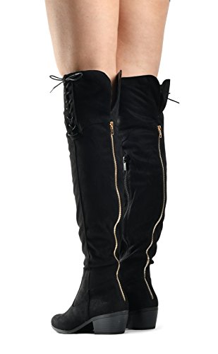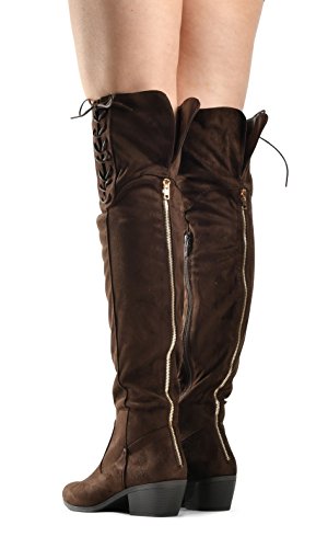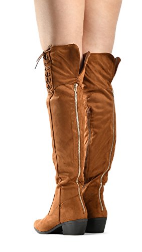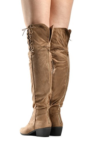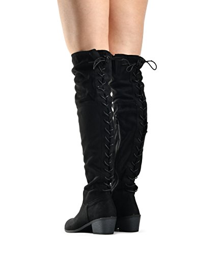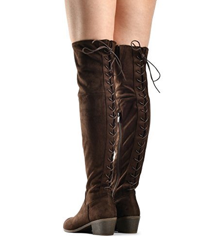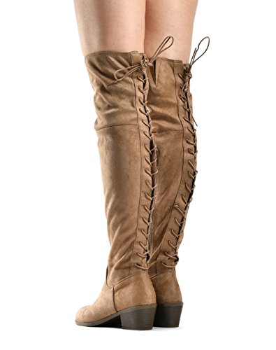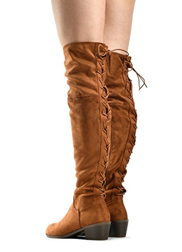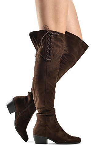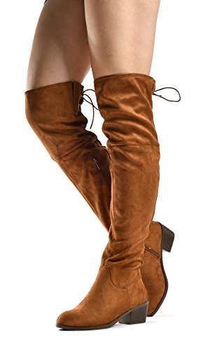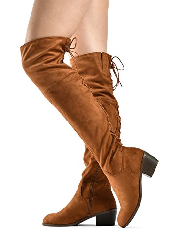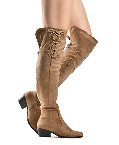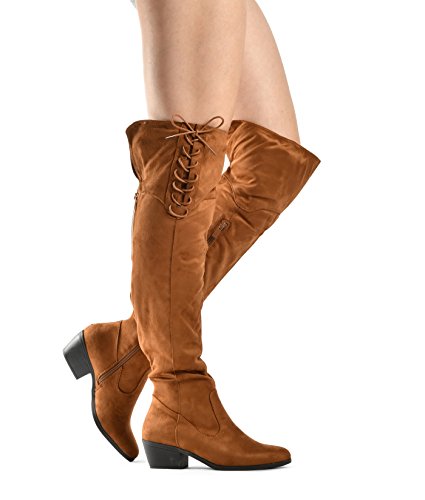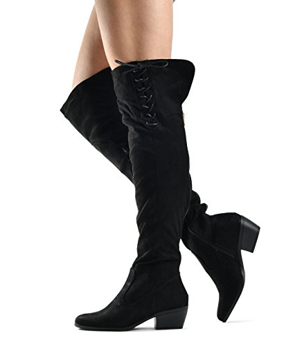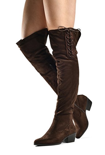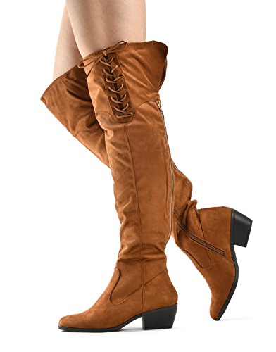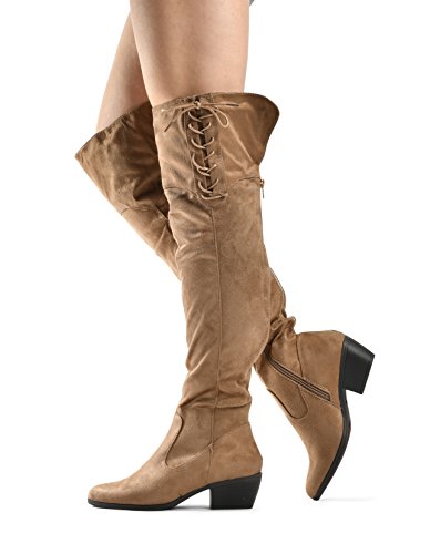 LUSTHAVE Women's Over The Knee Boots Stacked Low Heel Western Kate Lace Up Almond Toe Knee Hig...